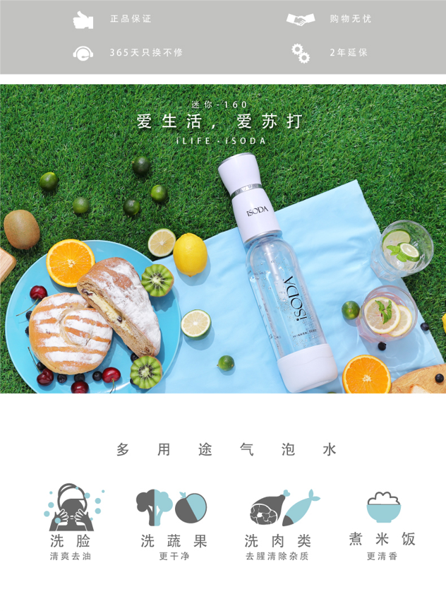 可用来制作各种气泡饮料,好喝好玩,机身卡式接口,一秒装卸。1支气弹可制作1L气泡水,约3罐气泡水。自己制作的气泡饮料无添加剂,好喝更健康,不用电源,简单操作。气泡水除了饮用之外,用来洗肉去腥,洗脸去油,蒸米饭提升口感,也是极好的。
