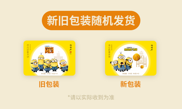 这款陶陶居流心奶黄月饼礼盒,精选细选好食材、优良原料、份量足,精选小麦粉、水、奶油、椰子浆等制成,嫩滑奶黄夹着甘沙咸蛋黄,浓郁细腻,轻嚼一口,绵软溢出,唇齿留香。外壳是神偷奶爸的小黄人图案,可爱萌趣。