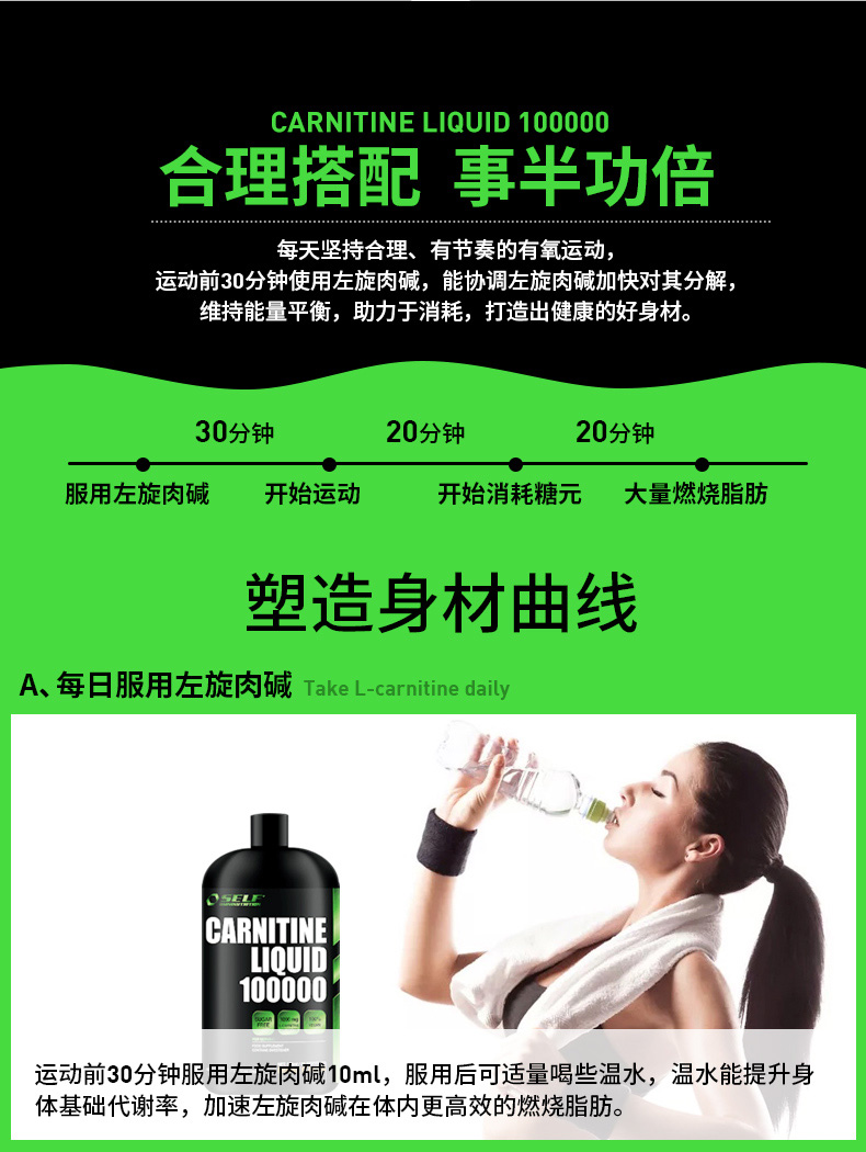 和所有的保健品一样,液体状态比胶囊、片剂的吸收更好,可更高效的将脂肪转运至线粒体燃烧,提高脂肪分解率,减脂效果强且明显。同时左旋能促进葡萄糖的氧化利用,改变线粒体呼吸酶的活性,提供机体有氧化供能,提高肌肉耐受力和后期恢复力,减少疲劳感