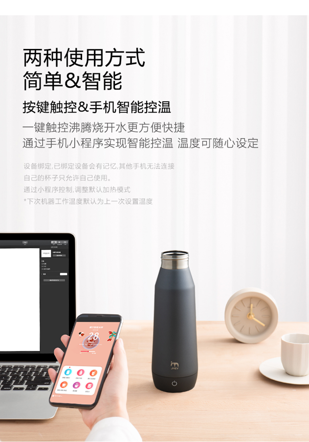 双层真空的结构设计,还能实现长效保温。智能控制温度,手机即可操控,可随心设定温度,50度泡奶粉、70度泡花茶、80度冲咖啡都能搞定。内胆304不锈钢,耐高温、抗腐蚀、耐酸碱、易清洗不生锈。