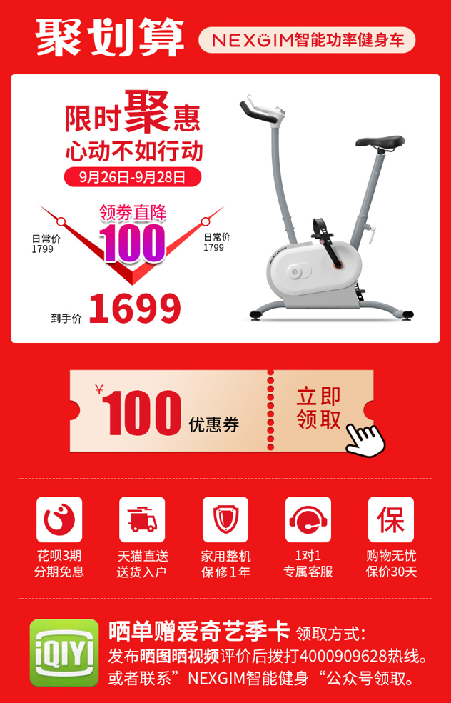 发布晒图评价后,拨打4000909628热线或者联系“NEXGIM智能健身”公众号领取。