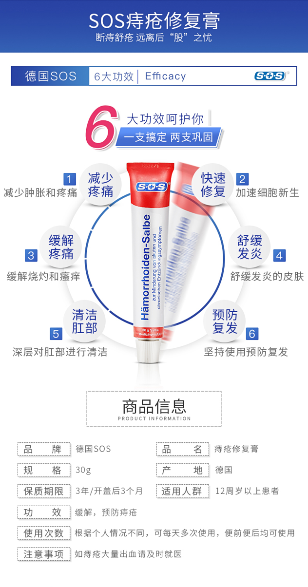 内痔外痔混合痣,一支搞定,孕妇也可以放心使用。SOS是德国国民药妆品牌,2016获德国国家品牌大奖,德国科技护理的典范。