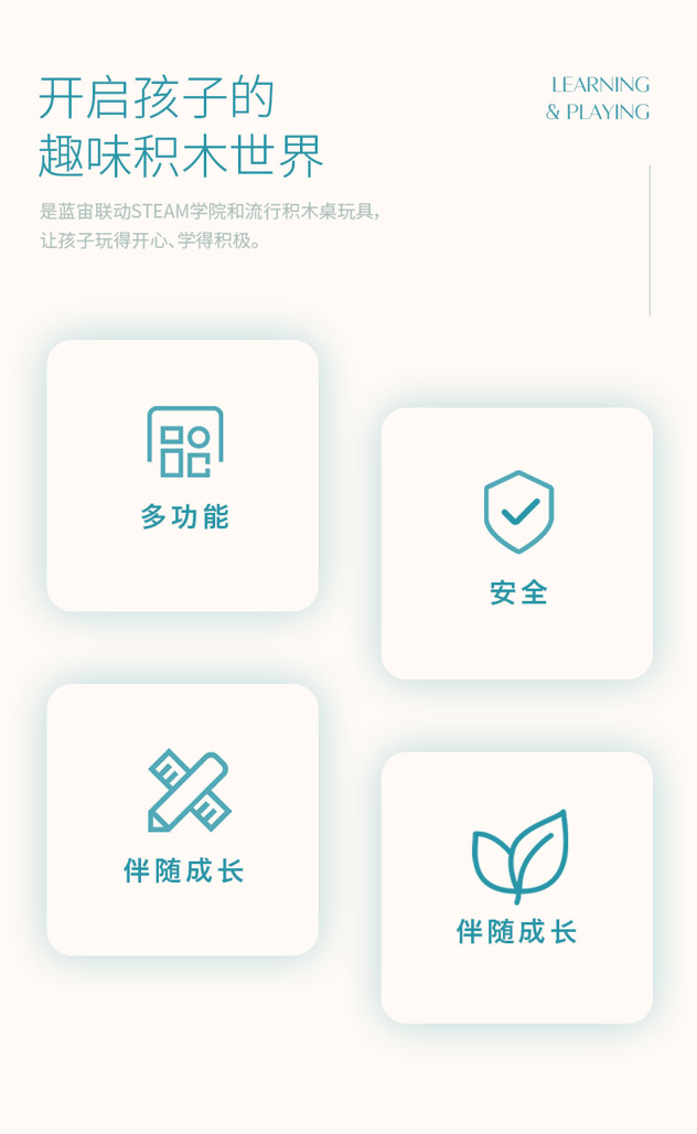 蓝宙多功能积木学习桌 超大肚容量,伴随成长随时调整。桌面双面可切换,一面是积木板,一面是平滑桌面,学习玩耍两不误。一桌6用,满足多种用途。