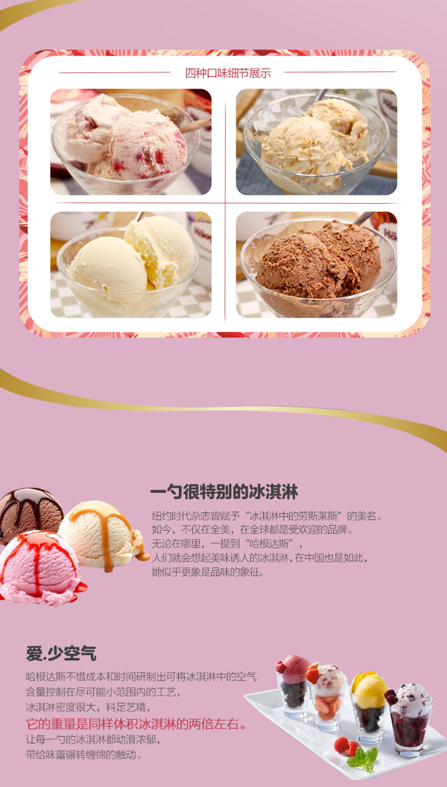 哈根达斯是风靡全球的冰淇淋品牌,被视为冰淇淋品牌中的贵族,亦被称为“超级品牌”。1921年由鲁本.马特斯创建于纽约。在提供冰淇淋的同时,哈根达斯非常注重营造一种氛围。其著名的广告词“爱她,就带她去哈根达斯(If you love her,take her to Haagen-Dazs.)”可以说是家喻户晓。