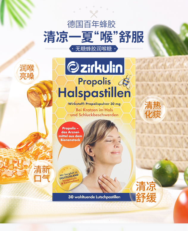 这款 Zirkulin 润喉糖含有丰富的蜂胶成分,可有效增强口腔抵抗细菌病毒的能力,愈合口腔黏膜,缓解咽喉不适的同时,贴在口腔溃疡处还能治愈空腔溃疡。