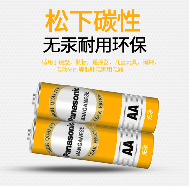 这款松下环保无汞碳性电池,包含5号20节+7号20节,碳性电池主要用于低耗电电器,如钟表,无线鼠标等,一节可以用很久。