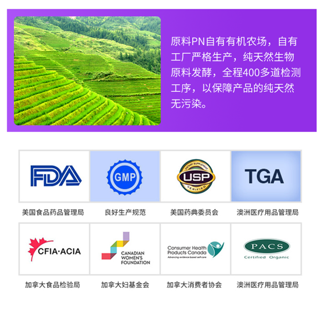 Preferred Nutrition是加拿大最大健康食品制造商Factors集团旗下核心专业品牌,集种植、加工、研发、生产、销售于一体的高端营养品制造企业,拥有自主研发的6000多个健康产品。在加拿大被誉为国宝级膳食营养补充剂品牌。产品通过美国食品药品管理局、澳洲医疗用品管理局等多项国际认证。