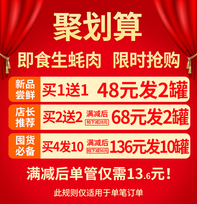 精选当天捕捞生蚝,蒜蓉汤味浓郁,色香味美,真空杀菌密封罐装。生蚝含有糖本和牛磺酸,补肾益精,可以缓解每天辛苦工作造成的压力和控制血压的升高。