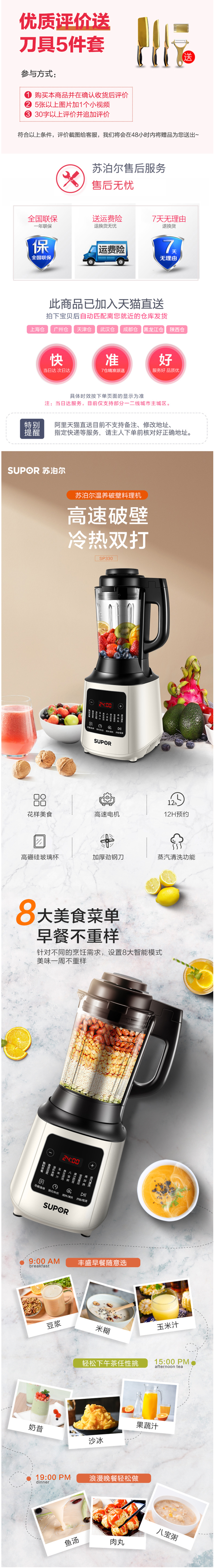 这款苏泊尔SP330智能破壁料理机,集豆浆机、榨汁机、冰沙机、料理机、辅食机、煮锅、磨粉机、绞肉机于一体,一机8用。