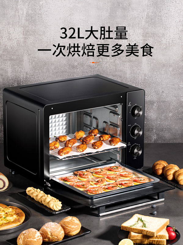 历史低价,32升烤箱,家庭实用容量,赠烘焙专用披萨盘、专用烘焙大礼包等。烤箱是个非常满足吃货幸福感的小家电。作为烘焙爱好者可以做各种小点心、蛋糕、蛋挞等,还可以烧烤、做披萨、烤红薯等,简单易操作,有些食物用烤箱加热比微波炉更美味。