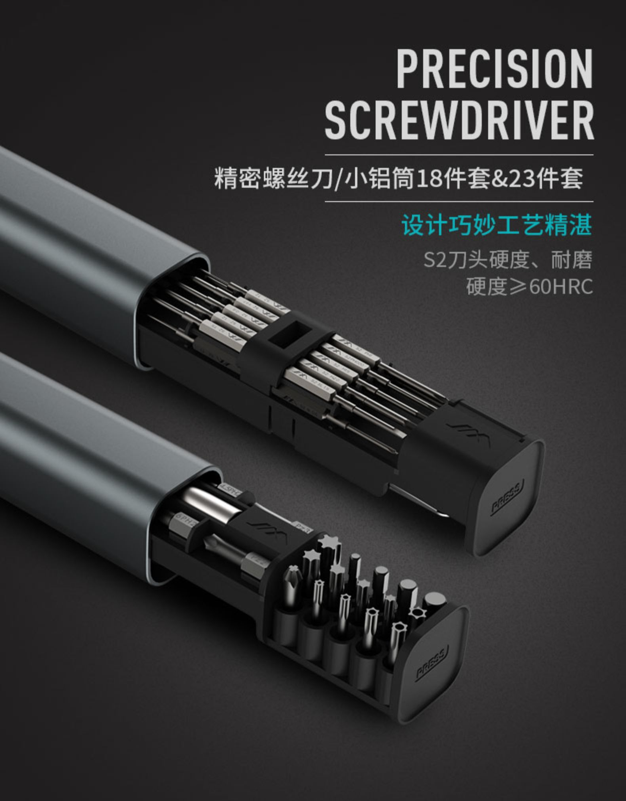 这款吉米家居精密螺丝刀套装的外壳采用精致铝质材料,外层涂装了金属漆,非常有质感,立体式收纳设计,节省空间,螺丝刀杆采用了铝合金材质,表面使用了阳极氧化处理,美观防滑,连接处内置强磁,易于插拔,专利按压弹射开关,批头更易拿取,批头表面也均经过了阳极氧化处理,使用省心。