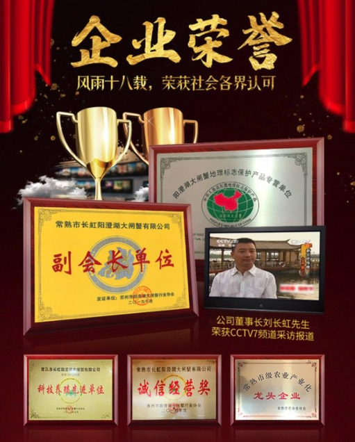 常熟市长虹阳澄湖大闸蟹有限公司是“阳澄湖大闸蟹行业协会副会长单位”,“地理标志保护产品专营单位”。阳澄湖原生态稀密度养殖,绿色纯正。大闸蟹饱满丰盈,个大体肥,壳薄肉嫩,蟹黄似火,膏脂浓郁~。全程顺丰冷链,死蟹包赔。