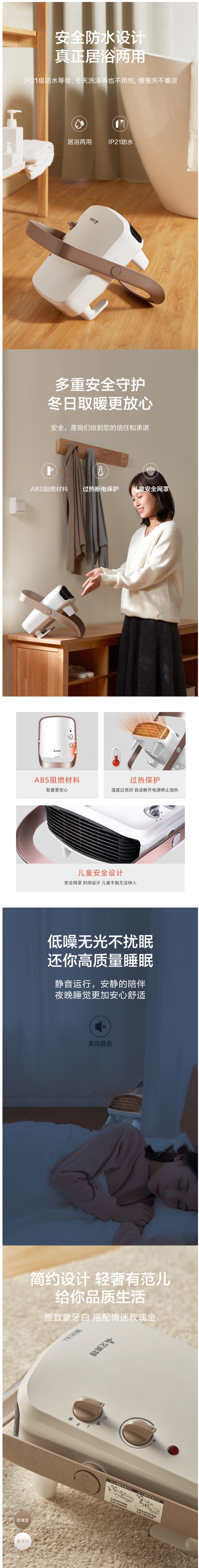 采用PTC陶瓷发热体,风鼓在风道旋转形成定向风,把PTC产生的热量通过出风口出吹出来,达到取暖的效果;PTC能快速发热,送暖快,无刺眼光无明火,更安全;