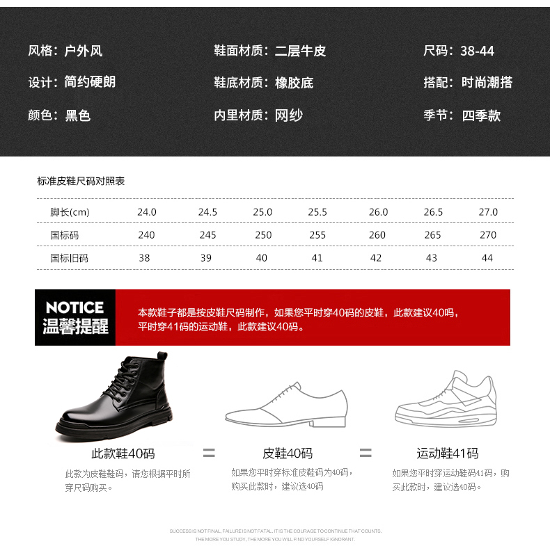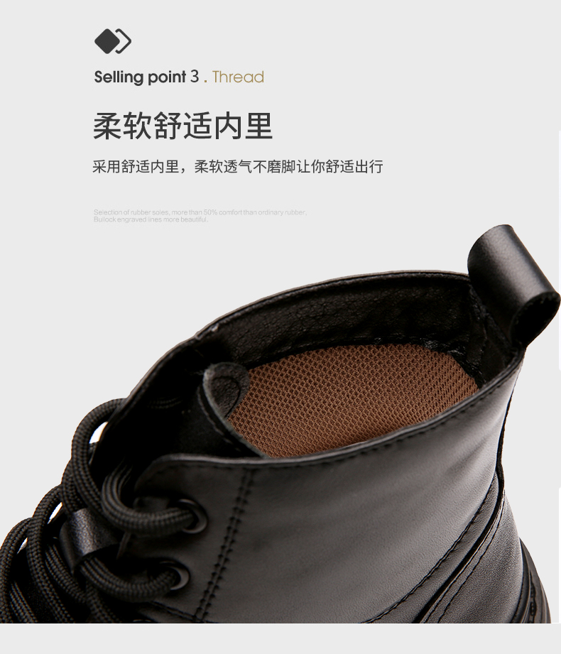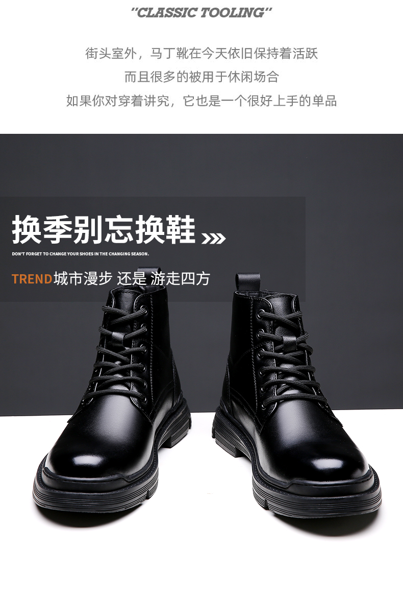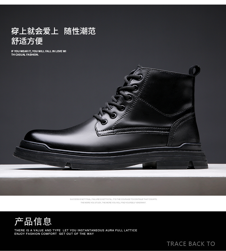 版型合脚不易挤脚,优质橡胶大底设计,缓震耐磨,防滑耐穿。经典8孔系带设计,英伦风高帮款式,轻松驾驭休闲商务等多个场合,百搭穿着。