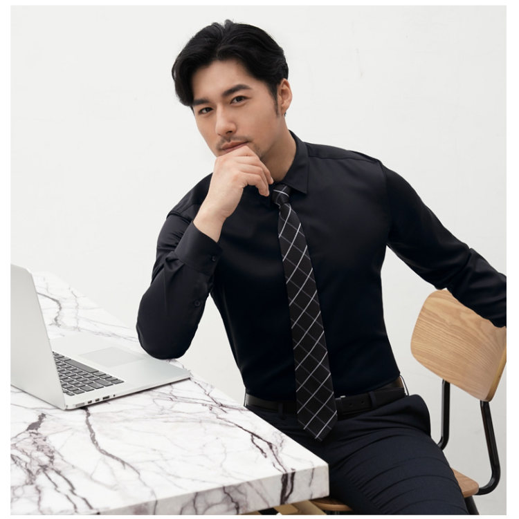 虽然面料织数高,但上身不露不透,同时免烫抗皱,易于打理,无论是日常休闲,或者工作商务,都能穿;内置的领衬,采用更细密的缝线,领子更挺括,更有型;肩部是包缝设计,走线细腻,无摩擦不适感;整体单色,无过多外部修饰,简约风。