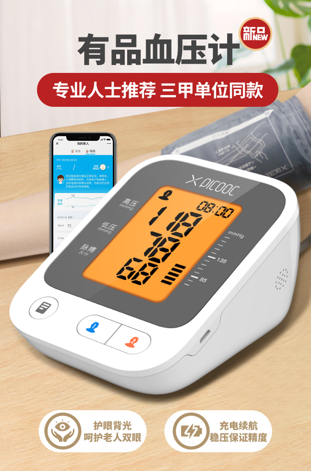 天猫picooc有品旗舰店188元,可领130元优惠券,实付58元到手,基础语音款此价,智能WiFi款可同步血压到微信。