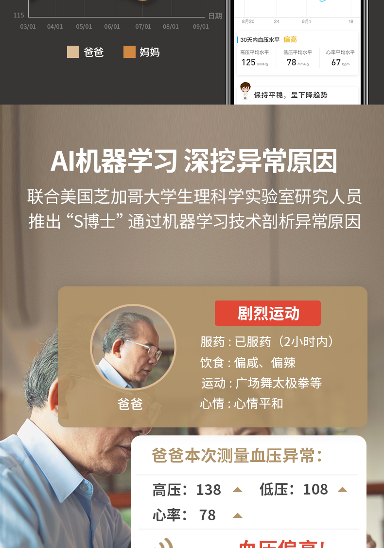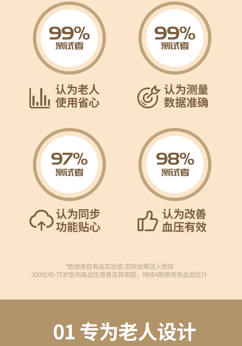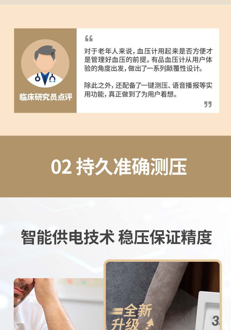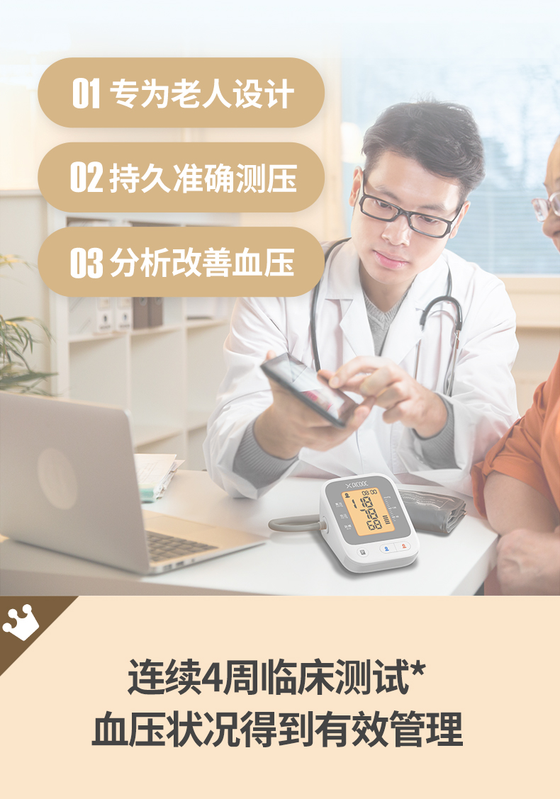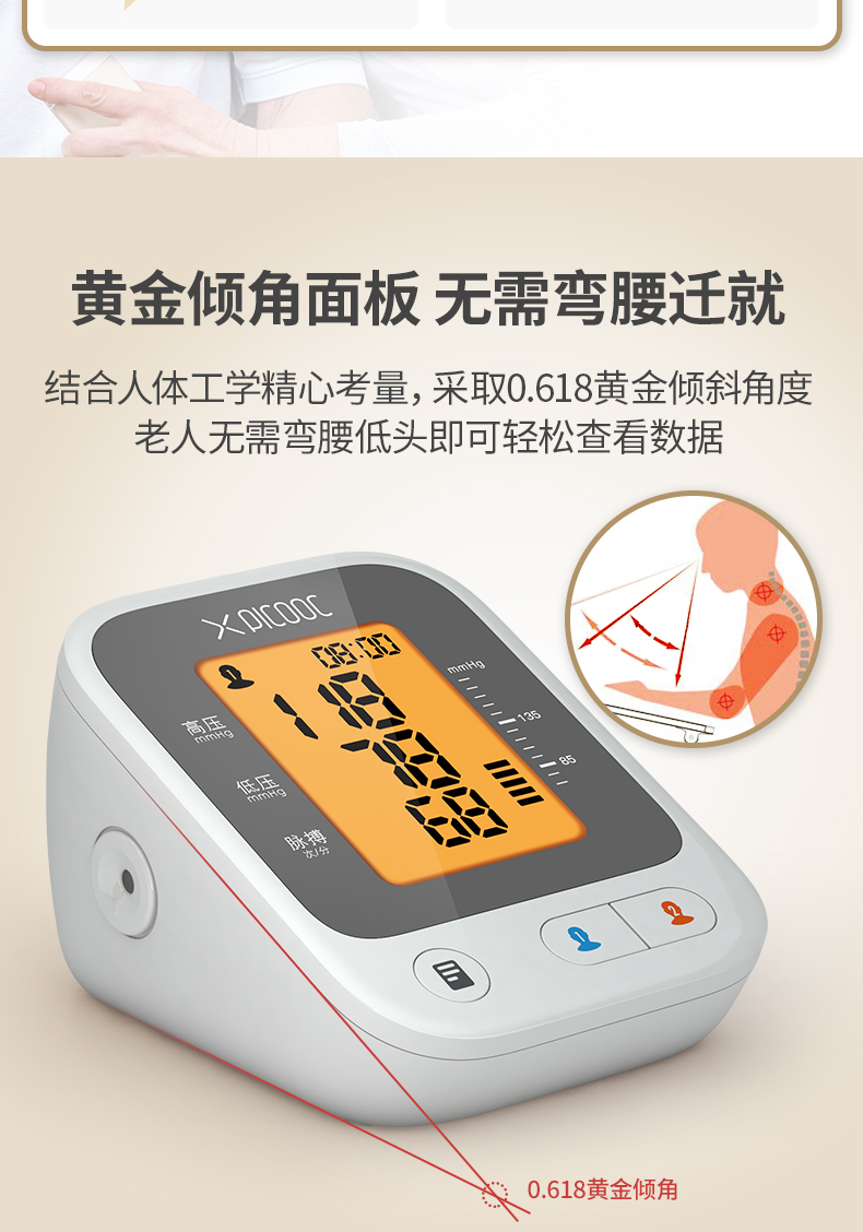 搭配高清大屏,字体更大,并拥有真人语音播报功能,即便老人视力不佳,仍能清晰了解血压状况。干电池供电,更换起来也方便,不用担心忘记充电。