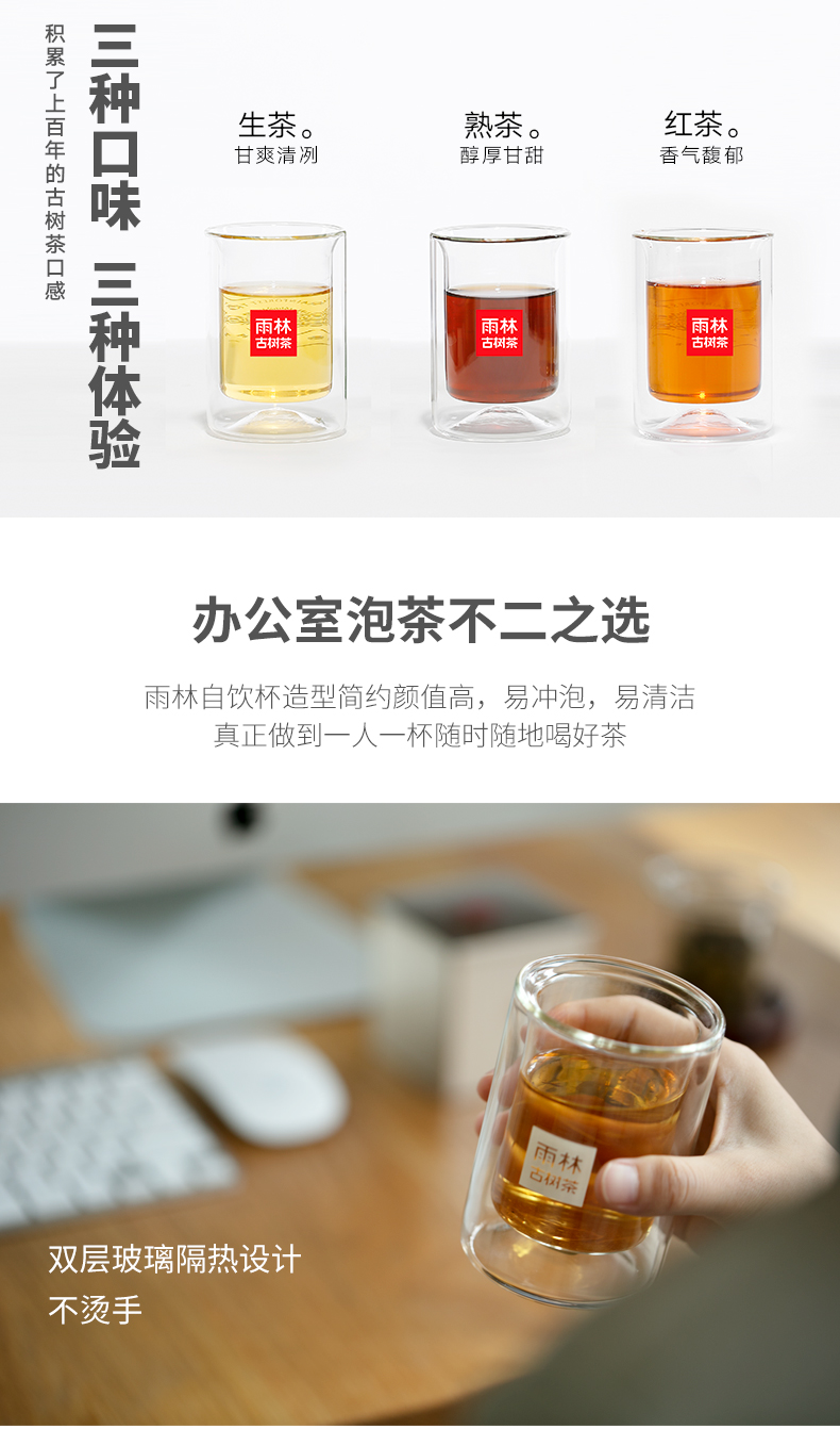 雨林自饮杯*1个(自饮杯含:玻璃杯+茶漏+木质杯垫)。