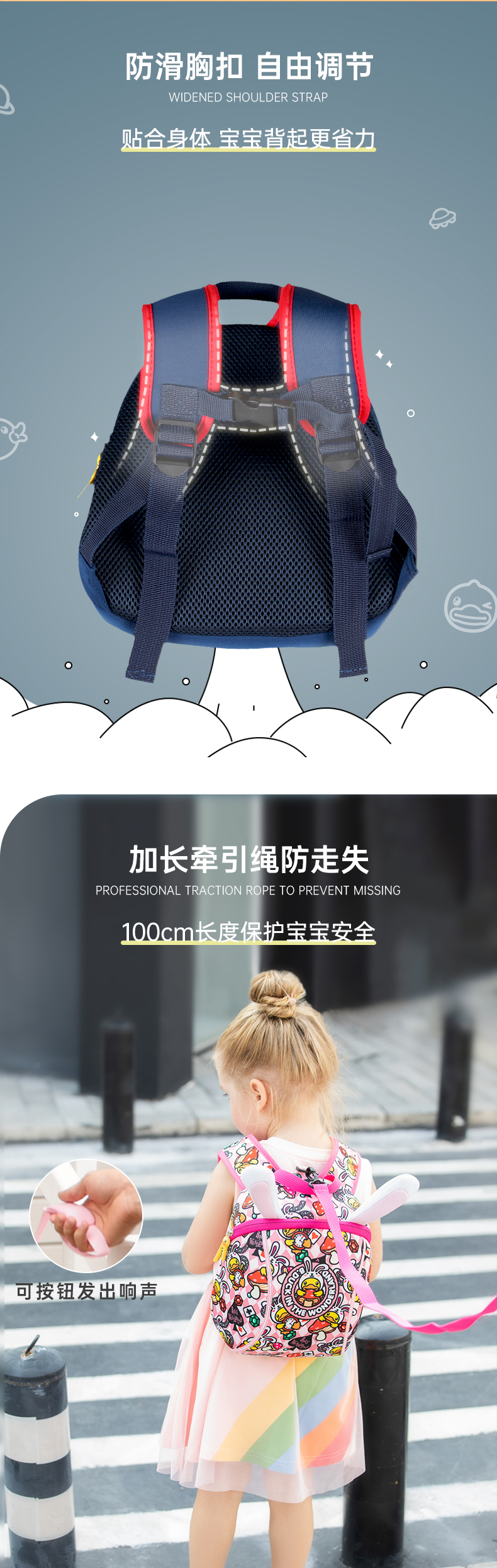 天猫luddy乐的旗舰店,12-14日天猫 天猫亲子日,¥68元 亲子日价,-20元优惠券,=48元 到手价,是正价268元的1.8折;小黄鸭正版授权,严格甄选SBR潜水面料,轻便防水,柔软、回弹、无异味,轻盈不压身,减轻儿童负担,加宽肩带,不勒肩,透气背垫,夏季也不闷热。100cm加长牵引绳,还可按钮发出声音,带孩子出行防走失。