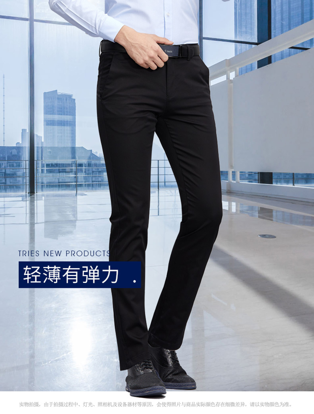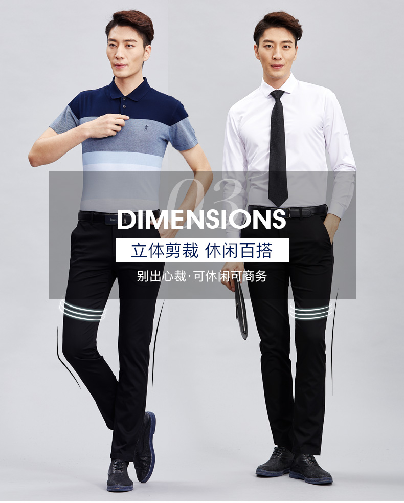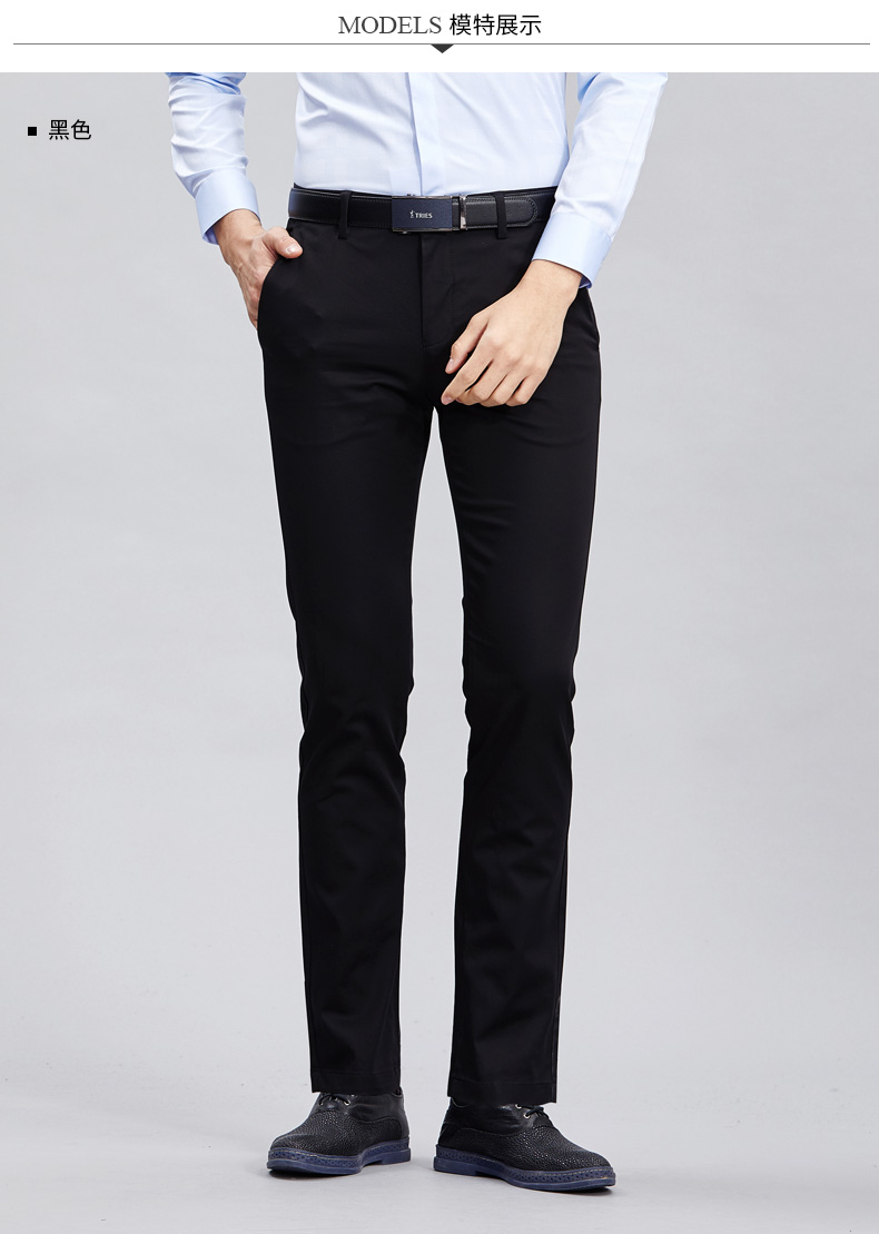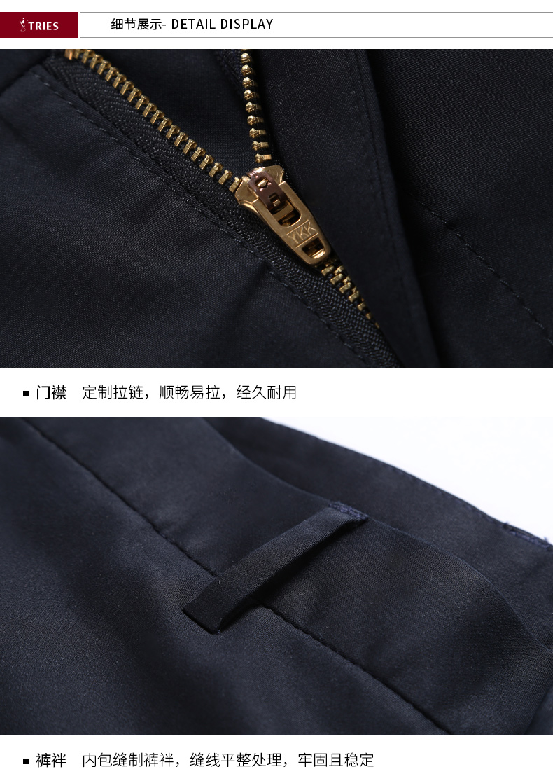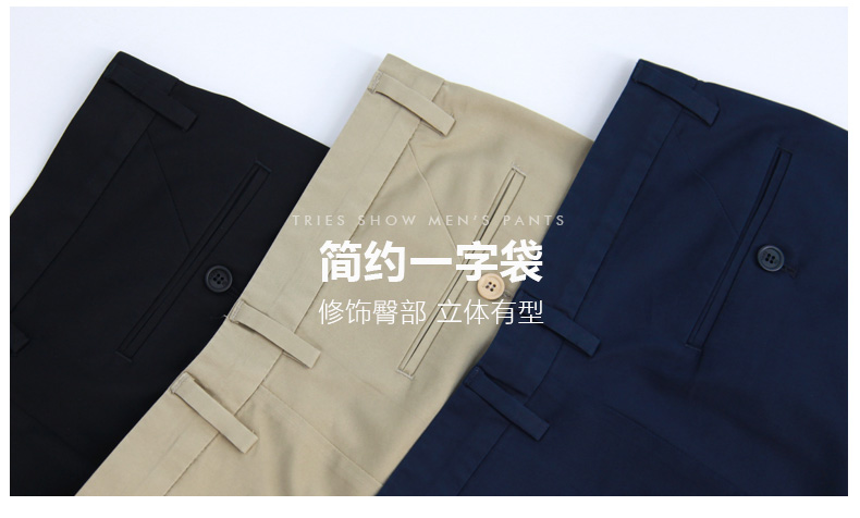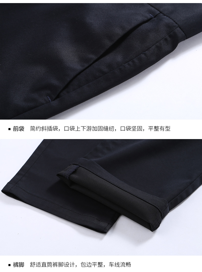 3D立体剪裁工艺,版型利落得体,修身显瘦。门襟处使用日本高品质YKK拉链,后袋为一字型一粒扣设计,细节精致到位。内里缝线紧密均匀,裤脚进行了锁边走线处理,耐磨耐穿。经典直筒款式,无论日常休闲,还是商务场合,都适合穿。