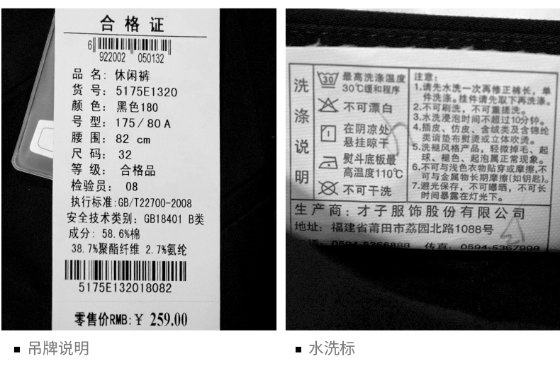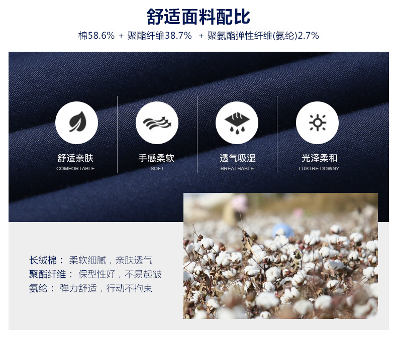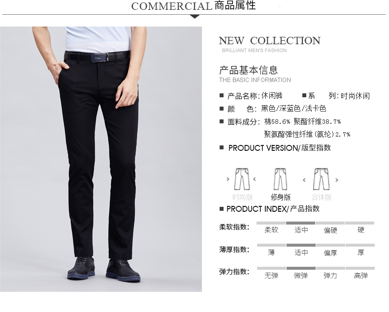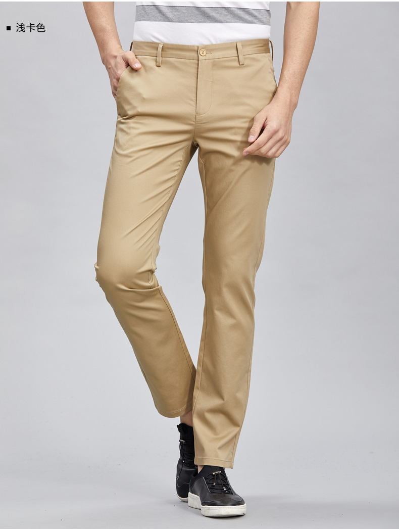 这款才子休闲裤面料成分为54.5%棉+42.2%涤纶+3.3%氨纶,厚度适中,手感柔软细腻,不易褶皱起球,上身弹力舒适不束缚,穿着舒适亲肤,很适合夏末秋初穿。