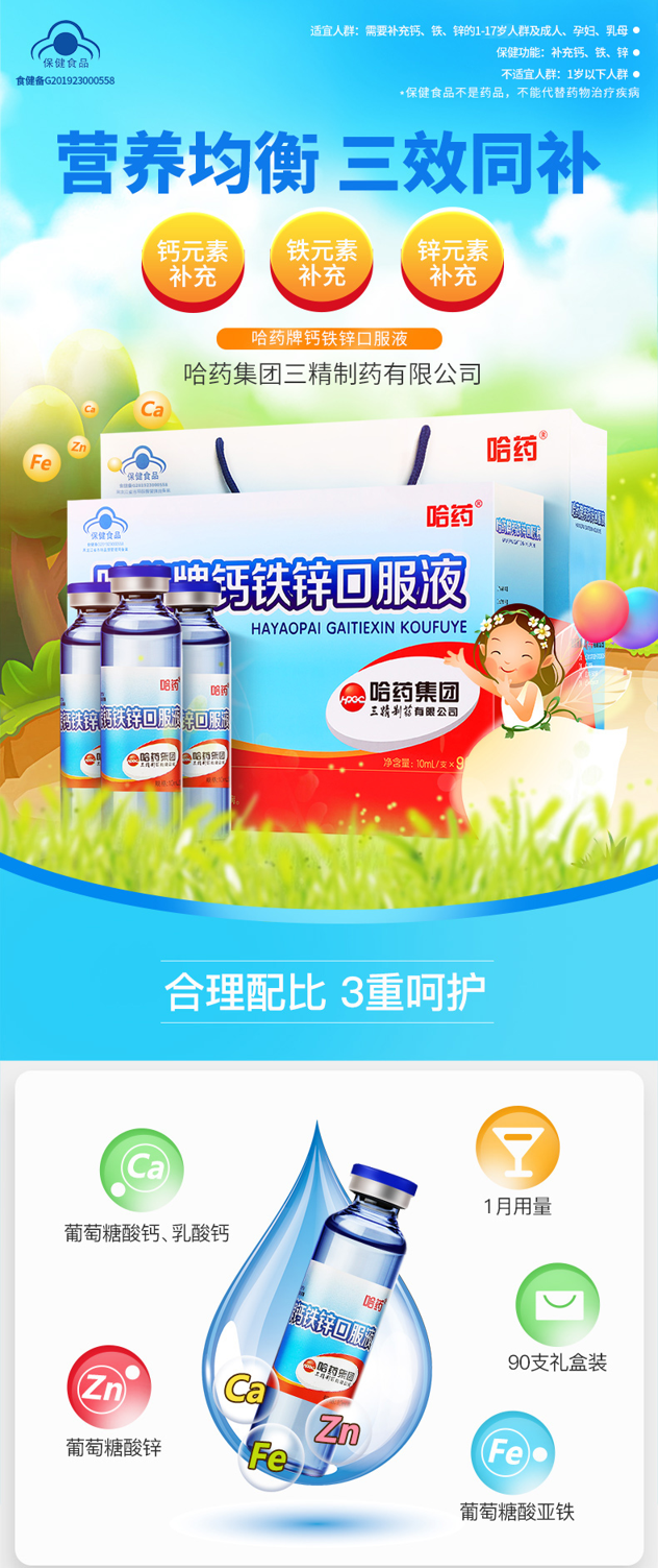 此款为钙铁锌口服液,以葡萄糖酸钙、乳酸钙、葡萄糖酸锌、葡萄糖硫酸亚铁为主要原料,每支含钙100mg、铁2.0mg、锌1.33mg,液体形式更好吸收,西柚口味,酸甜好入口,儿童不排斥。官方授权 保证正品 可查真伪。规格:10ml*90支。