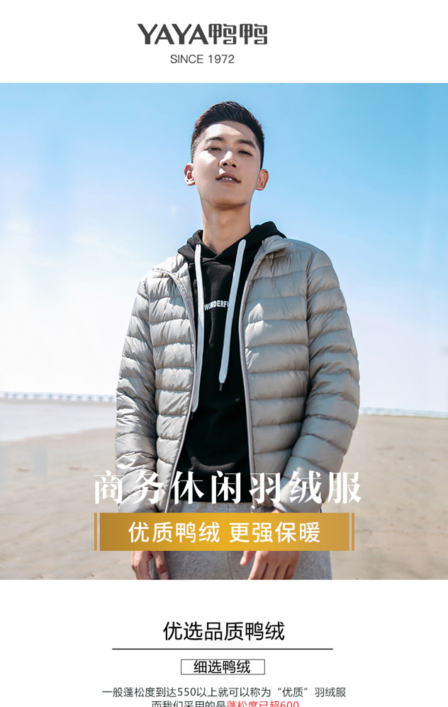 这款鸭鸭 2020年新款 男士短款轻薄羽绒服,内里90%鸭绒填充,600蓬松度,舒适保暖,不跑绒/不钻绒,轻度防水面料,更干爽,防风袖口,时尚方便。
