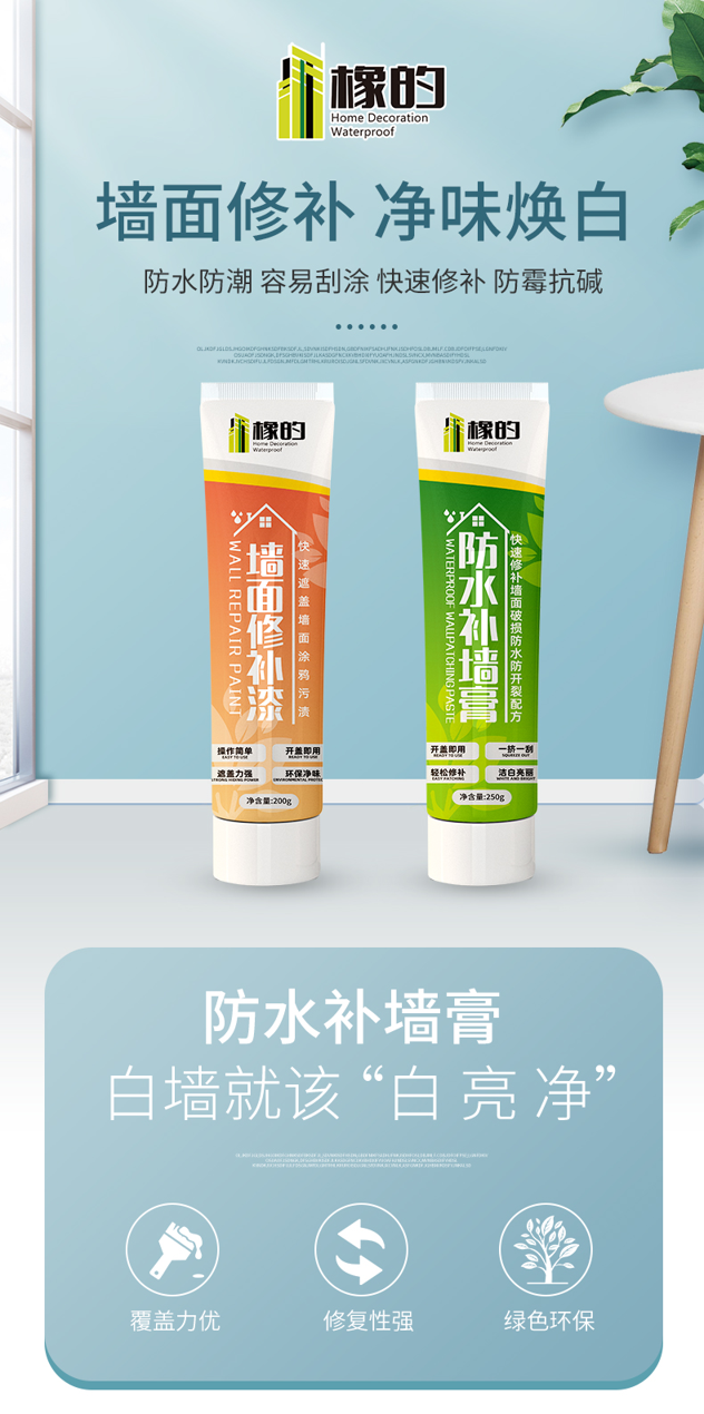天猫橡的旗舰店4.9元,可领2元优惠券,实付2.9元到手,免刷漆 净味无甲醛 简单方便 不掉粉。防水防潮防霉免漆补墙膏,墙壁裂缝修复,墙面翻新,绿色环保,持久净白,遮盖力强,开盖即用,挤,刮,磨,三步修补墙壁,快捷不脏手!告别墙面脏污/破损/孔洞/盯眼/涂鸦