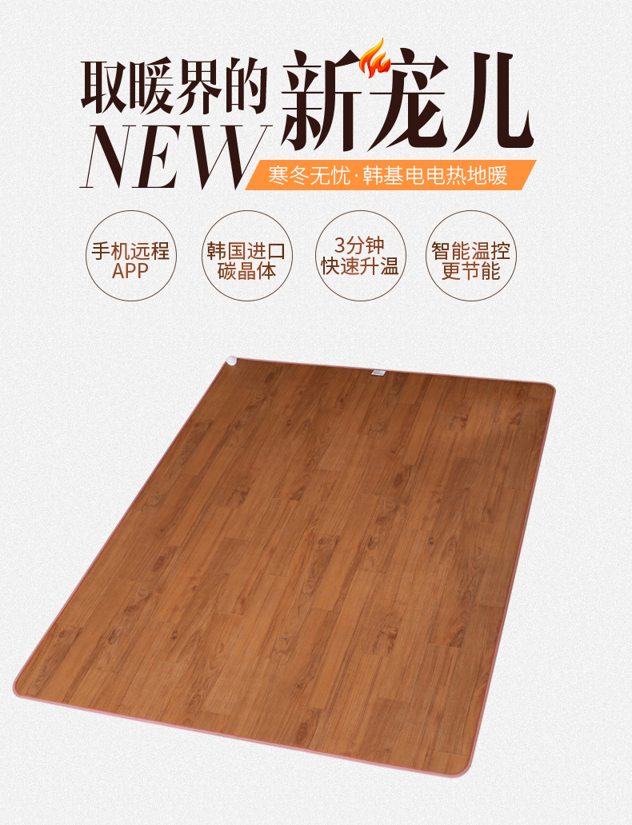 这款韩基电碳晶地暖垫,以 30*50cm为例,适合暖脚使用。采用韩国进口碳晶发热膜,无导入电流区域设计,可以整垫整体发热,均匀无温差,电热转化率高达99%。底层是品牌地板革,表皮是PVC导热革,具有抗老化、耐磨、易擦洗、加热后无异味等多重优点;