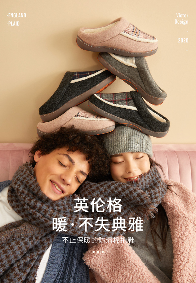 这款科柔加绒棉拖鞋,针对国人脚型定制设计,拥有很好的支撑足弓,能让脚掌很好的贴服跟底,不易脱跟。整双鞋子由舒适帮面、14mm弹力海绵、软质EVA通垫、后跟垫插片、TPR双色防滑底组成。