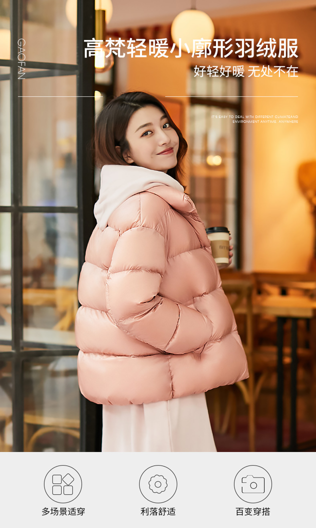 天猫高梵旗舰店,¥249元 双11预售价,-20元 付定金立减,-90元优惠券,=139元 到手价(定金30+尾款109),高梵立领短款面包羽绒服,高梵大牌商场同款,线下专柜1000多家,填充百分之90高蓬松度鸭绒,无异味不钻绒,时尚立领设计,韩版小廓形,时尚但不夸张,带来时髦感的同时,收缩膨胀感,服帖身形不臃肿。「双11红包来啦」
