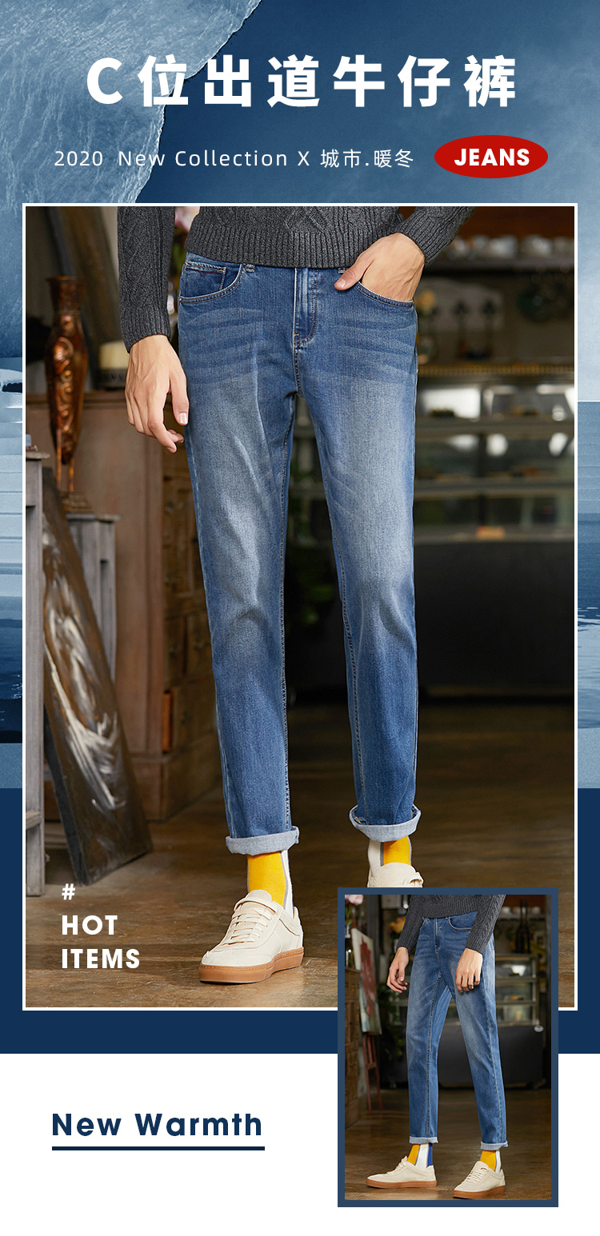 这款真维斯牛仔裤面料主体为棉氨纶混纺,面料柔软细腻,混入了少量氨纶提高弹性,没有普通牛仔裤的紧绷感,穿着更为舒适。并且面料做了加厚处理,适合秋冬穿着。