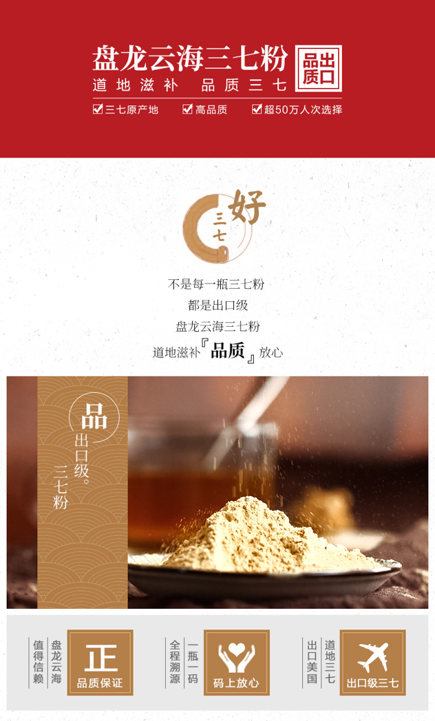 盘龙云海是22年畅销品牌,是三七协会会长单位,严格按照GMP标准生产,符合美国FDA标准,出口级品质,线下药房同步销售。