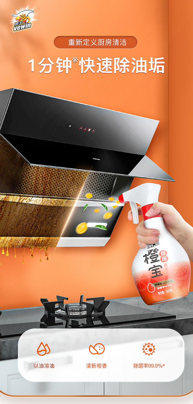 天猫vewin威王旗舰店19.9元,可领10元优惠券,实付9.9元到手,天然甜橙油 创新溶解技术 化油为水强效去油。喷一喷2分钟搞定陈年老油污!无需费力搓洗,抹布一擦即净!省时又方便,让厨房焕然一新!「双11红包来啦」