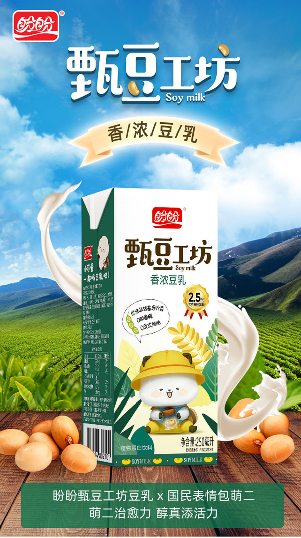 盼盼 甄豆工坊豆奶香豆乳,高蛋白低脂肪豆奶,甄选北纬45°黑土地优质非转基因大豆,先进工艺保留了大豆营养成分和新鲜口感,提升营养吸收率,0香精0防腐剂、真正的香浓,抗衰老,美容养颜,元起早餐不二选择。