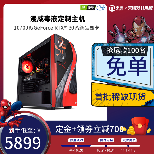 DIY攒机,作为一个经久不衰的话题,由于具有一定的知识门槛,对于普通常人并非易事。随着OEM整机配件信息越来越透明化,OEM整机厂商们均推出了不少具有性价比的品质整机,同时还提供完善的售后服务,与其费心费时搜索资料变成攒机大神,不如花钱买个省心省力,选购优质大厂整机。小编今天为大家推荐的就是来自宁美的 魂-GI6 II 台式主机 毒液蜘蛛侠定制版 组装台式整机,采用i7-10700F+RTX3070的性能组合,主要部件均采用大厂配件,近来有攒机需求的买买不妨关注一下。