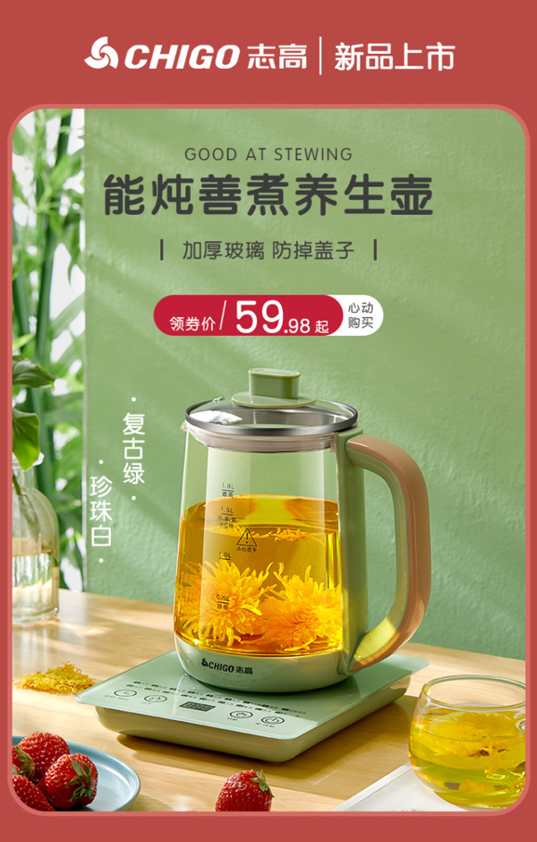 天猫志高小逸专卖店69.98元,可领10元优惠券,实付59.98元到手,送蒸蛋架,志高全自动多功能养生壶,一键触达,功率/保温温度可调,24h预约定时!不如买台志高养生壶,煮茶,熬粥,蒸饭,一步到位,触摸面板,安全高硼硅玻璃「双11红包来啦」