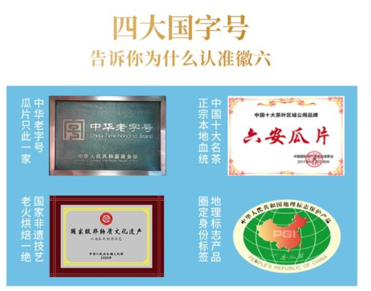 徽六是安徽省六安瓜片茶业股份有限公司旗下著名六安瓜片品牌,2010年6月,安徽省六安瓜片茶业股份有限公司被国家商务部授予“中华老字号”,2012年2月,“徽六”牌六安瓜片被国家质检总局正式纳入地理标示保护产品。