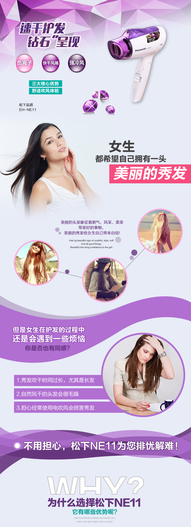 松下电吹风拥有很好的口碑,网上多家媒体的实测效果,松下都优于戴森、飞利浦和博朗。松下电吹风核心优势是拥有50度恒温护发档位,温度低的话吹干速度慢,温度高的话损伤头发中的蛋白质,其实很多品牌都有这功能,但关键是做到出风口温度恒定,松下这点做的非常好。