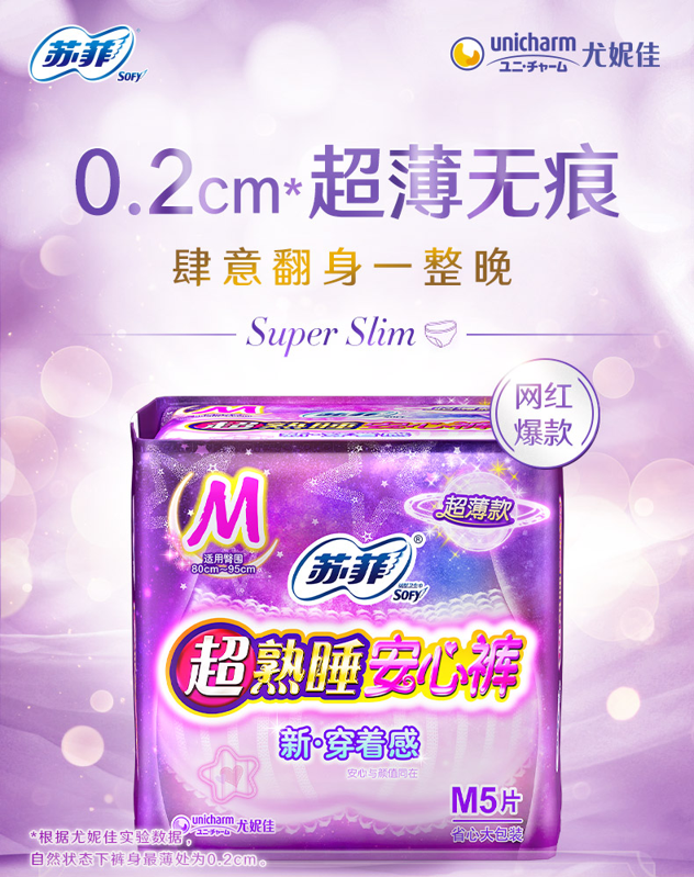 天猫超市69.9元,可领5元优惠券,实付64.9元到手,苏菲0.2cm超薄无痕安心裤,具有数千透气孔,告别闷热,日本进口伸缩无纺布配合超声波粘合技术,腰腹部更柔软,360度全方面防漏!「双11红包来啦」