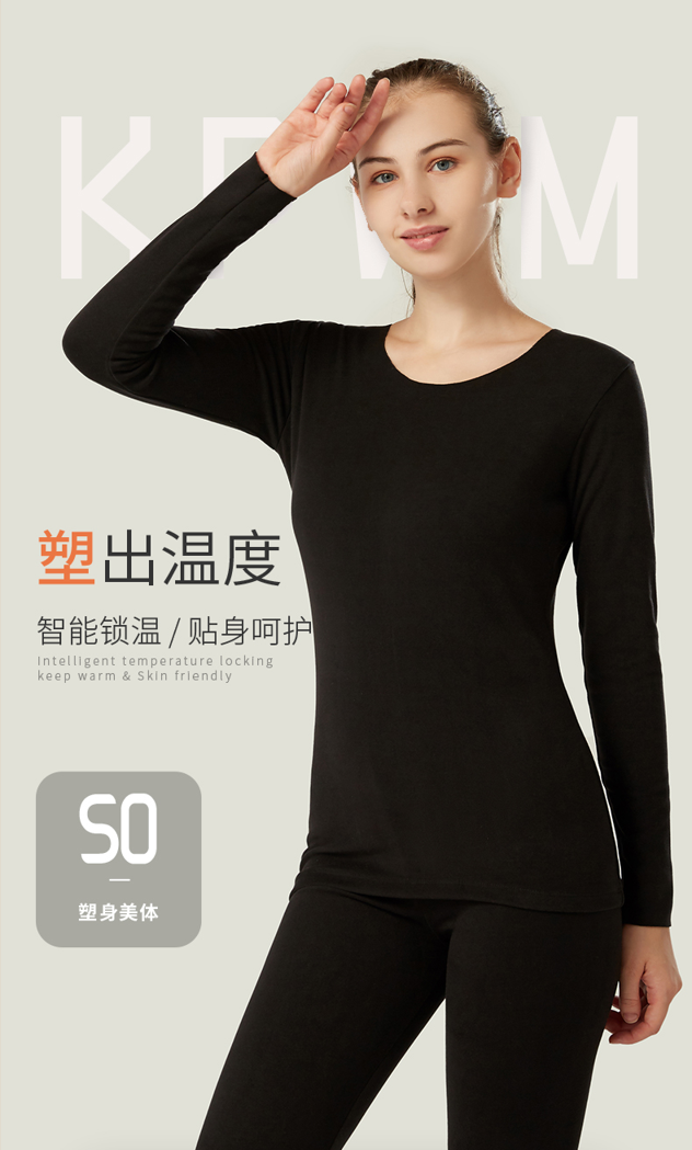 这款宝娜斯保暖套装,采用全新功能性纤维,在贴合肌肤的时候,形成有效防封层和锁温层,通过纤维快速导热,温度均匀分布,保暖效果好,且不易起球起静电,穿着亲肤舒适。