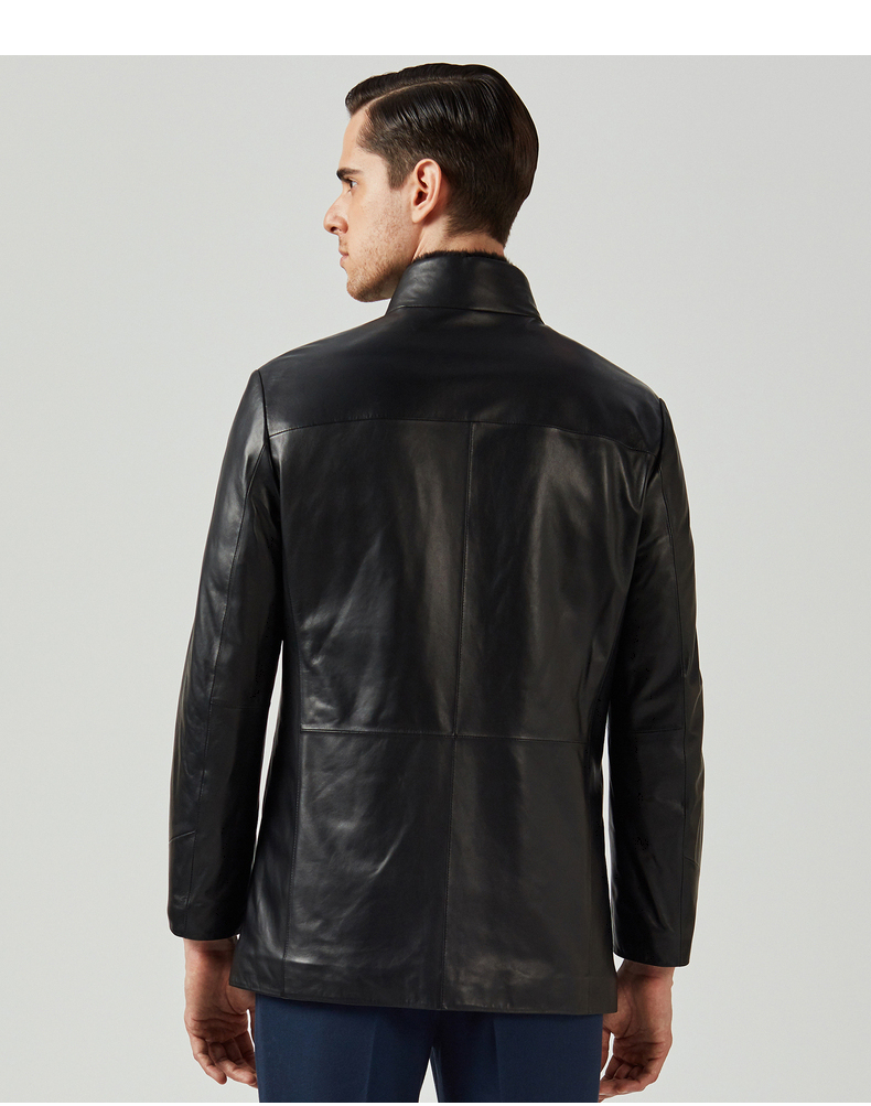 合体版型,能更好修饰身材。衣领采用进口水貂材质,毛发蓬松有光泽,提升档次且不易灌风,进一步提升保暖效果。简约立领款式,商务场合、日常休闲都适合穿着。