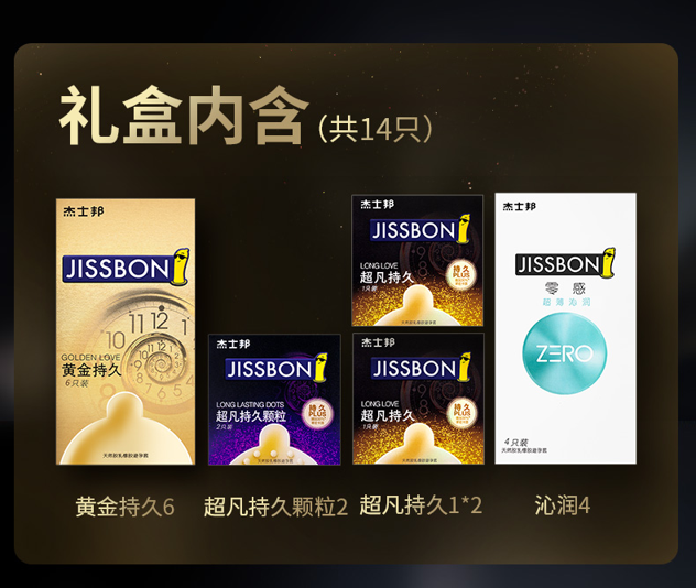 黄金持久 延时防早泄 超薄情趣礼盒,规格是黄金持久 6只、超凡持久颗粒 2只、超凡持久 1只*2、沁润零感 4只。
