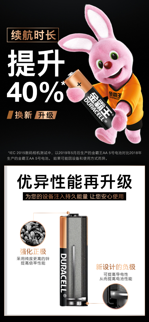 这款金霸王碱性电池,具有更紧密排列的能量颗粒,提供10倍持久电力;尼龙顶部密封设计,可以防止电池内部物质泄漏,稳定电压,不会漏液;不含汞、镉、铅等重金属,更环保,可以随意扔;适用于钟表、遥控器、无线键鼠、收音机、血压计、血糖仪、电动玩具等。