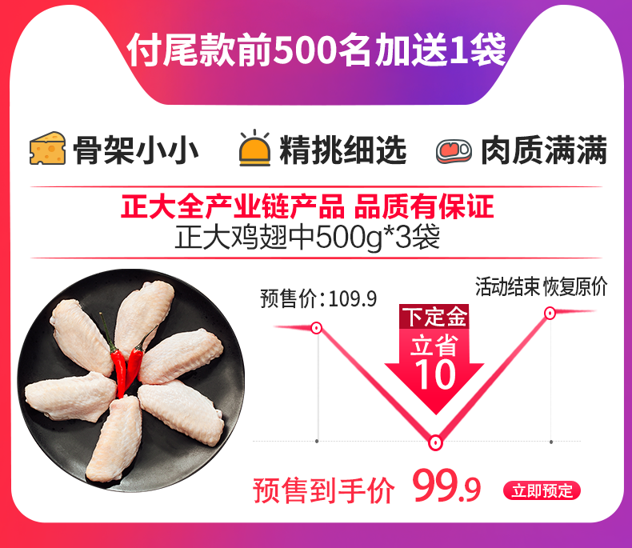 =94.9元 到手价(定金20+尾款74.9),规格是500g*3袋,前500名付尾款还加送1袋,包冷链运输。