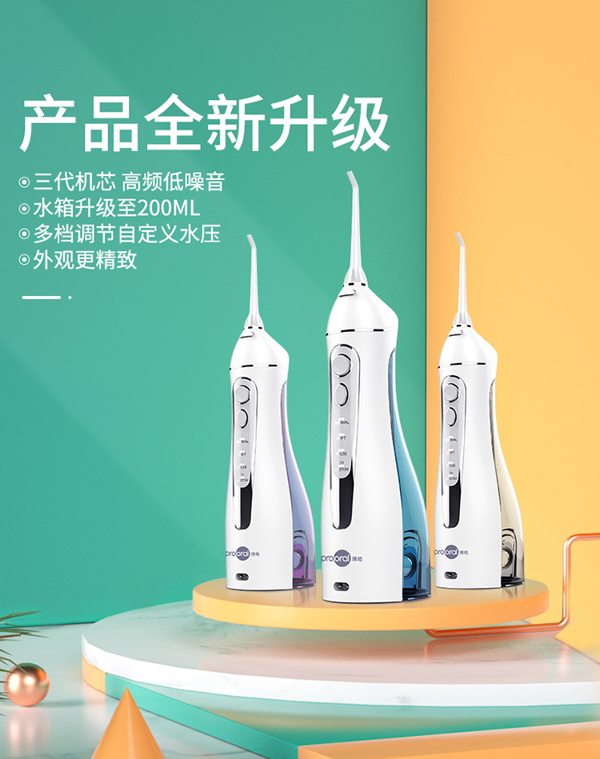 目前国内的水牙线的制造难度就在于压缩体积的情况下如何制造出超大水压,一般来说喷出5米的水牙线已经很给力,这次推荐的博皓电动冲牙器,喷射距离高达7米!不仅如此,甩开了水槽储水,这次推荐的是便携性的,每天中午、下午吃饭后就可以随时冲牙。