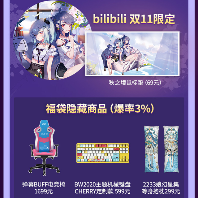 天猫bilibili旗舰店福袋预售价333元,预付定金40元,立减20元,1日付尾款,叠加300-40津贴和店铺满299-30,到手243元包邮,近期好价,感兴趣的买买可以入手。