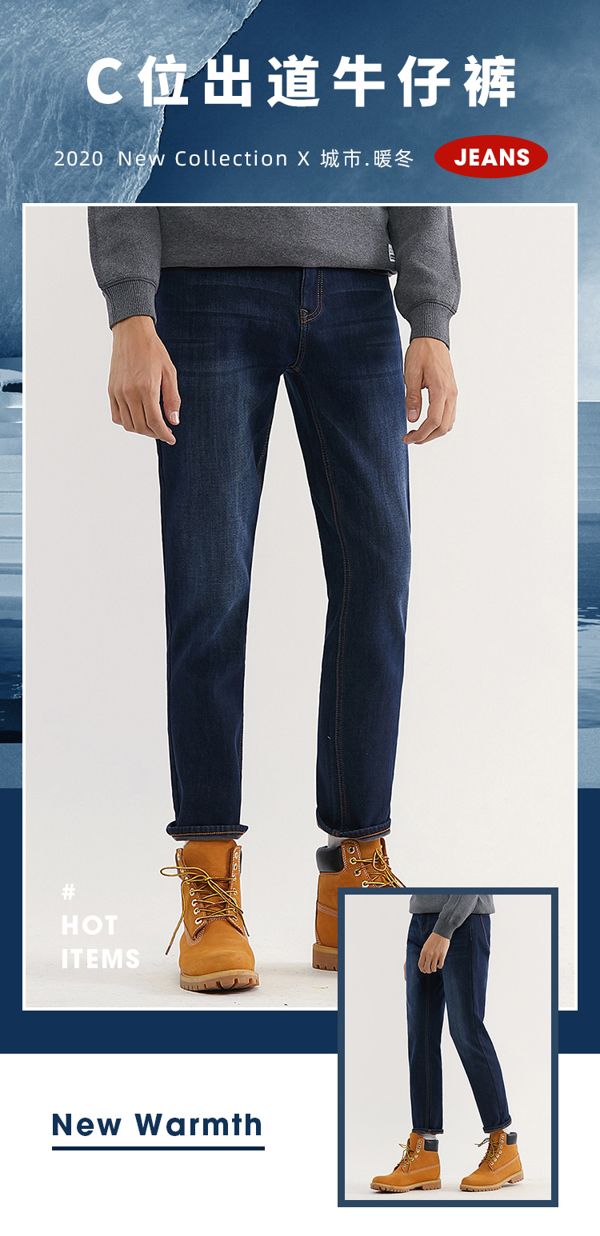 加绒款、厚款两种选择。这款真维斯牛仔裤面料主体为棉氨纶混纺,面料柔软细腻,混入了少量氨纶提高弹性,没有普通牛仔裤的紧绷感,穿着更为舒适。并且面料做了加厚处理,适合秋冬穿着。
