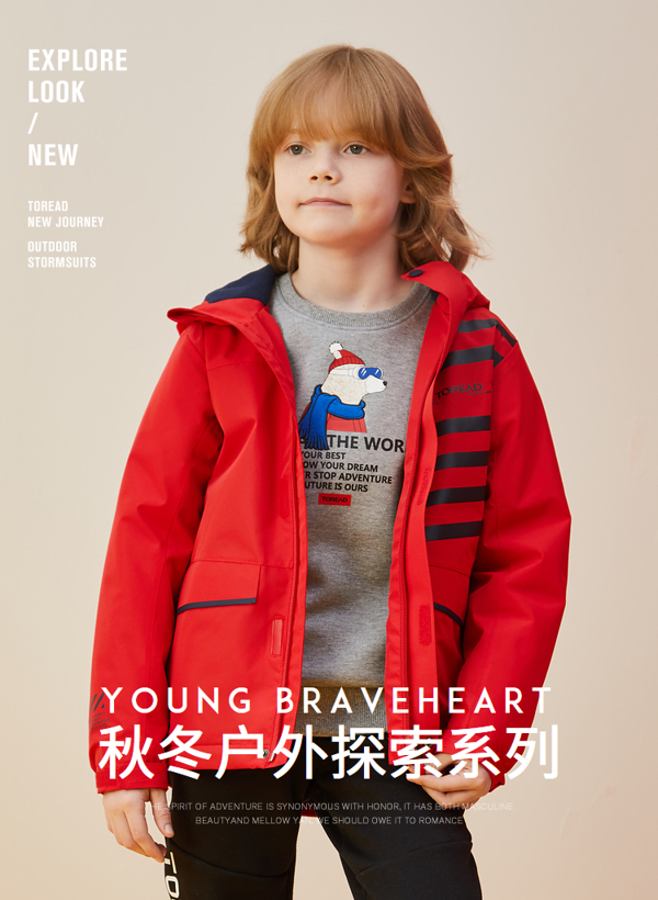 这款探路者儿童冲锋衣外套,面难采用高密度梭织复合TPU防水膜设计,具有良好的防泼水防风效果。相比普通三合一冲锋衣,没有保暖内胆之后,重量更轻,上身没有压重感,适合春秋穿着,也可搭配抓绒内胆穿,进一步提高保暖效果。