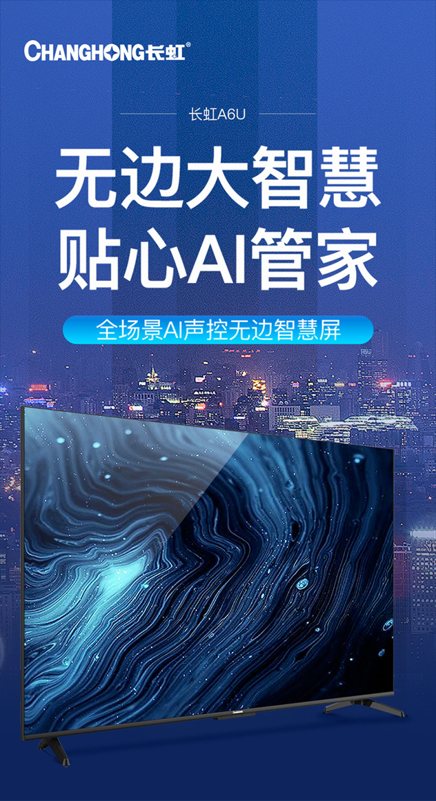 长虹A6U智能电视,全场景AI声控,免遥控,24小时随时唤醒,能够深层识别多轮对话,可以联动米家、华为等物联网智能设备,打造智慧家居,无边智慧屏设计,沉浸感强,4K HDR画质更加清晰,畅玩3A大作,内置4核A55芯片,2+16G内存,看大片、玩游戏均不卡顿。